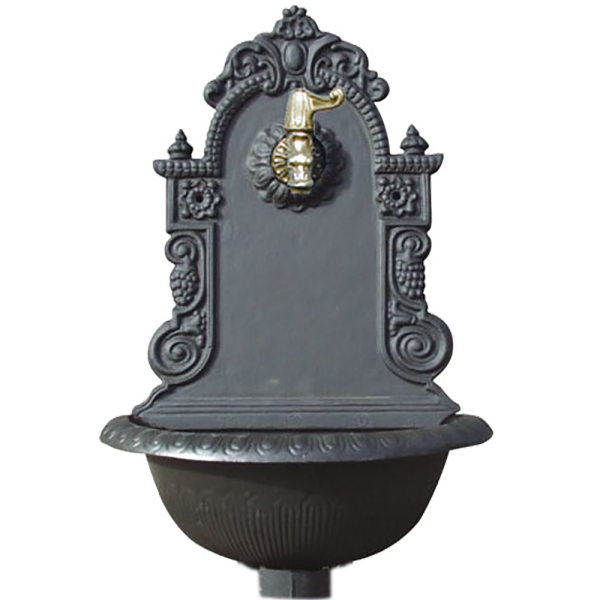 Fontana a muro in ghisa, stile VENEZIA, di altezza 750 mm e larghezza vasca 460 mm completa di rubinetto in ottone a...