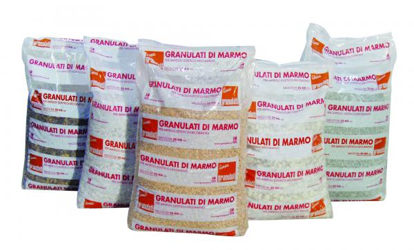 Granulati di marmo selezionati per impiego estetico e decorativo. Per ornamento giardini. Decorazioni per vasi e...